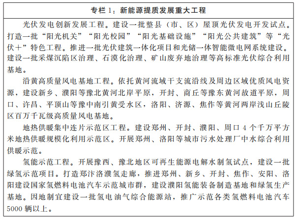 沿黃綠色能源廊道。依托我省黃河流域干支流沿線及周邊區域優質可再生能源資源,建設豫北黃河北岸、豫東黃河故道、豫中南引黃受水區、黃河兩岸淺山丘陵區等百萬千瓦級風電基地和一批千萬平方米地熱供暖規?;檬痉秴^,實施豫西、豫北等“可再生能源+儲能”示范項目,有力支撐黃河流域生態保護和高質量發展。