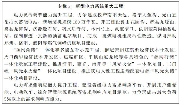 擴大外電入豫規模。積極挖掘現有外電入豫通道送電能力,加快特高壓交流電網建設,逐步消除特高壓“強直弱交”安全隱患,全面釋放青電、疆電入豫工程送電能力。加快推進陜電入豫工程建設,其中可再生能源電量比例不低于50%。加強與內蒙古、山西、吉林等省(區)銜接,綜合考慮經濟性和合理性,積極研究論證第四條外電入豫通道。