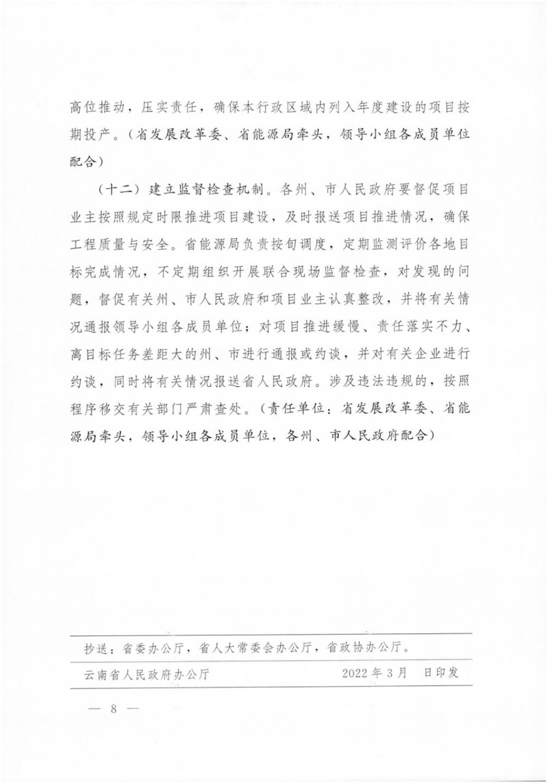 優(yōu)先支持大型基地開發(fā),重點(diǎn)支持金沙江下游、瀾滄江中下游、紅河流域、金沙江中游、瀾滄江金沙江上游“風(fēng)光水儲(chǔ)”和曲靖“風(fēng)光火儲(chǔ)”等6個(gè)多能互補(bǔ)基地,爭(zhēng)取3年內(nèi)全面開工并基本建成。支持“新能源+鄉(xiāng)村振興”項(xiàng)目,積極開展“千鄉(xiāng)萬村沐光行動(dòng),重點(diǎn)支持新能源+特色產(chǎn)業(yè)、生態(tài)修復(fù)、綠色食品、鄉(xiāng)村旅游等項(xiàng)目。
