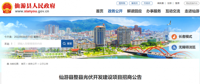 日前,福建仙游縣發(fā)布整縣光伏開(kāi)發(fā)建設(shè)項(xiàng)目招商公告,公告提出投資人須提供引入的產(chǎn)業(yè)項(xiàng)目建設(shè)方案和承諾函。引入總投資不少于5億元的涉及新能源產(chǎn)業(yè)鏈項(xiàng)目,主要為:新能源、新型電化學(xué)儲(chǔ)能領(lǐng)域核心材料生產(chǎn)、先進(jìn)裝備制造;鋰電池循環(huán)利用;能源領(lǐng)域精密設(shè)備、電子設(shè)備先進(jìn)制造等至少一個(gè)。