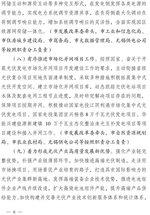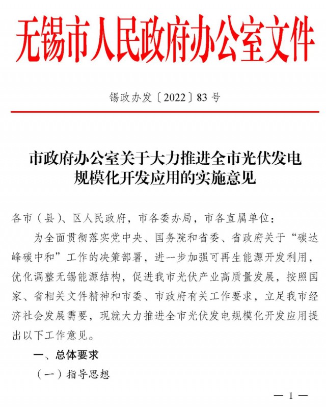 近日,江蘇省無錫市人民政府印發(fā)《關(guān)于大力推進全市光伏發(fā)電規(guī)?;_發(fā)應用的實施意見》,文件提出:到2030年,江陰市、宜興市、錫山區(qū)、惠山區(qū)建成全國整縣(市、區(qū))屋頂分布式光伏開發(fā)試點縣(市、區(qū)),力爭創(chuàng)成1-2個試點示范區(qū),其他地區(qū)結(jié)合地方實際有序推進光伏發(fā)電開發(fā)利用。
