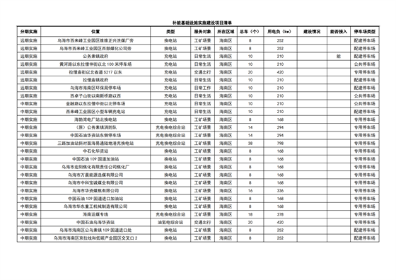 日前,內(nèi)蒙古自治區(qū)烏海市能源局印發(fā)《烏海市“十四五”新能源補(bǔ)能基礎(chǔ)設(shè)施布局建設(shè)規(guī)劃》,《規(guī)劃》提出發(fā)展目標(biāo):建設(shè)補(bǔ)能基礎(chǔ)設(shè)施共計(jì)194座,包含11座四位一體綜合站,加油加氫充電綜合站8座,加油加氣加氫綜合站1座,充電換電綜合站18座,充電換電加氫綜合站2座,充電換電光伏儲能綜合站4座,充電光伏儲能綜合站6座,換電光儲綜合站2座,加氣充電綜合站3座,充電站86座,換電站52座,加氫站1座。