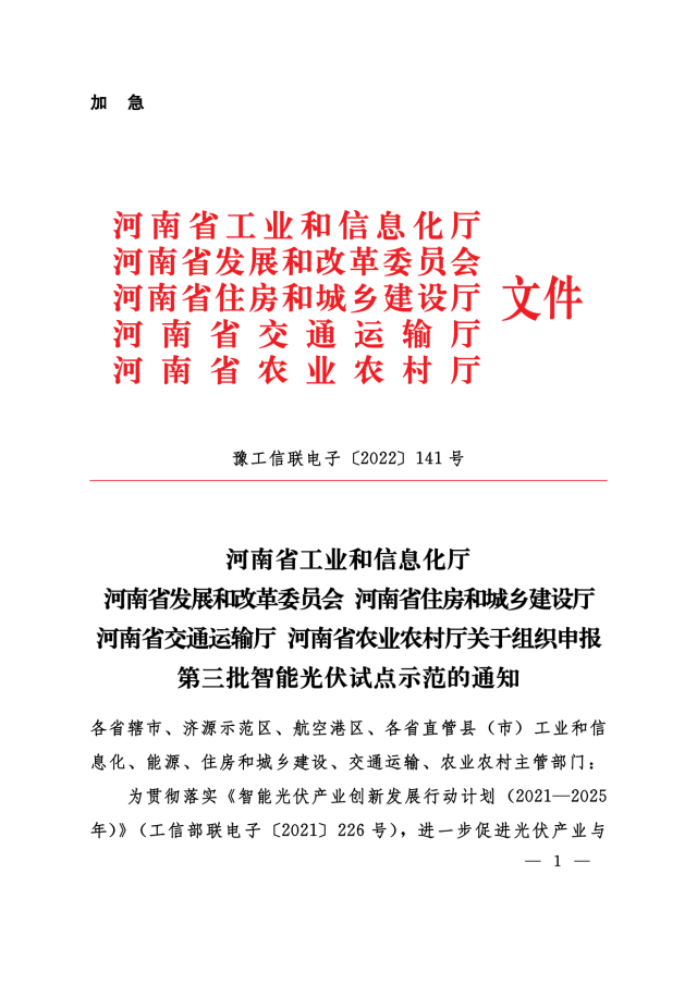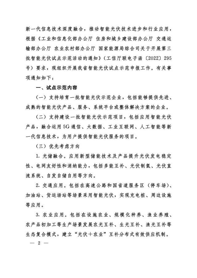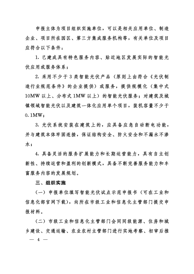 11月24日,河南省工信廳、發改委、住建廳、交通廳、農業廳等聯合下發《關于組織申報第三批智能光伏試點示范的通知》,對示范企業、示范項目予以支持,包括: