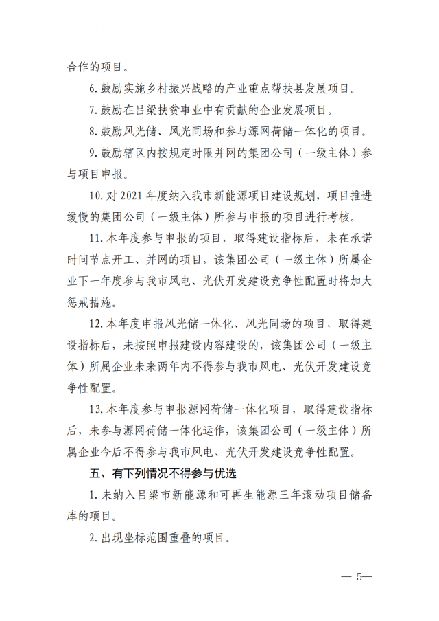 鼓勵風光儲、風光同場和參與源網(wǎng)荷儲一體化的項目。對2021年度納入我市新能源項目建設規(guī)劃,項目推進緩慢的集團公司(一級主體)所參與申報的項目進行考核。