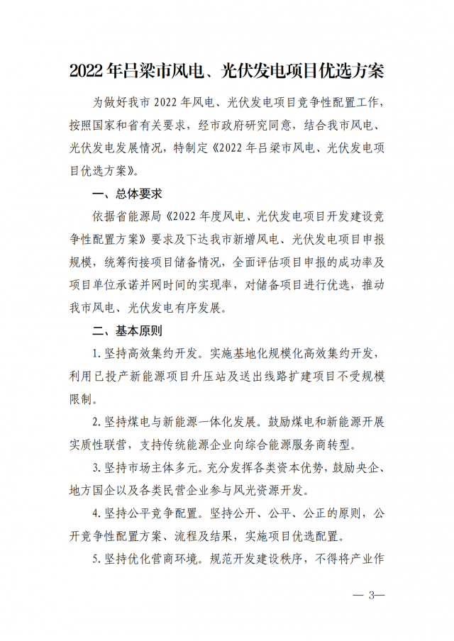 近日,山西呂梁市能源局發(fā)布關于《2022年呂梁市風電、光伏發(fā)電項目優(yōu)選方案》的通知。