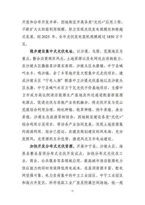 光伏重點任務(wù):大力推進太陽能開發(fā)利用,到2025年,全市光伏發(fā)電裝機規(guī)模超過1850萬千瓦。