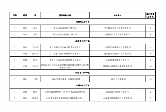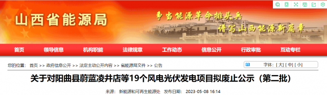 為加快推進(jìn)新能源“十四五”規(guī)劃建設(shè)進(jìn)度,實(shí)現(xiàn)我省新能源產(chǎn)業(yè)高質(zhì)量發(fā)展,我局組織各市能源局對(duì)2021年及之前項(xiàng)目單位投資不積極、確定無(wú)法建設(shè)的風(fēng)電光伏發(fā)電項(xiàng)目進(jìn)行了梳理。相關(guān)地市上報(bào)擬廢止項(xiàng)目清單,經(jīng)我局匯總,擬將陽(yáng)曲縣蔚藍(lán)凌井店等19個(gè)總規(guī)模100.8萬(wàn)千瓦風(fēng)電光伏發(fā)電項(xiàng)目予以廢止,現(xiàn)予公示。相關(guān)企業(yè)如有異議,請(qǐng)向相關(guān)市能源局提出書面意見,并在公示期(5個(gè)工作日)內(nèi),由市能源局上報(bào)省能源局。