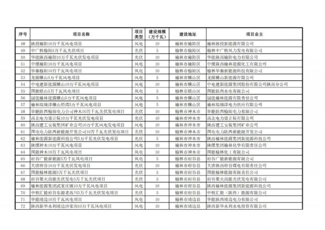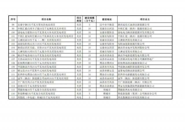 根據(jù)國家發(fā)展改革委辦公廳、國家能源局綜合司《關(guān)于2023年可再生能源電力消納責(zé)任權(quán)重及有關(guān)事項(xiàng)的通知》(發(fā)改辦能源〔2023〕569號(hào))和《關(guān)于開展陜西省 2023 年風(fēng)電光伏發(fā)電項(xiàng)目開發(fā)建設(shè)有關(guān)工作的通知》(陜發(fā)改能新能源〔20 23〕792 號(hào))精神,在各市申報(bào)基礎(chǔ)上,我們組織省級(jí)自然資源、生態(tài)環(huán)境、林業(yè)等職能部門會(huì)審,省級(jí)電網(wǎng)評(píng)分和專家評(píng)審,綜合確定了117個(gè)項(xiàng)目1001萬千瓦納入2023年陜西省風(fēng)電、光伏發(fā)電項(xiàng)目保障性并網(wǎng)規(guī)模(其中風(fēng)電73個(gè)604萬千瓦,光伏44個(gè)397萬千瓦)。
