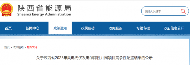 現(xiàn)將2023年陜西省風(fēng)電、光伏發(fā)電保障性并網(wǎng)項(xiàng)目競(jìng)爭性配置結(jié)果進(jìn)行公示。公示時(shí)間為2023年8月25日至2023年8月31日,如有異議,請(qǐng)?jiān)诠酒趦?nèi)以書面實(shí)名反映。