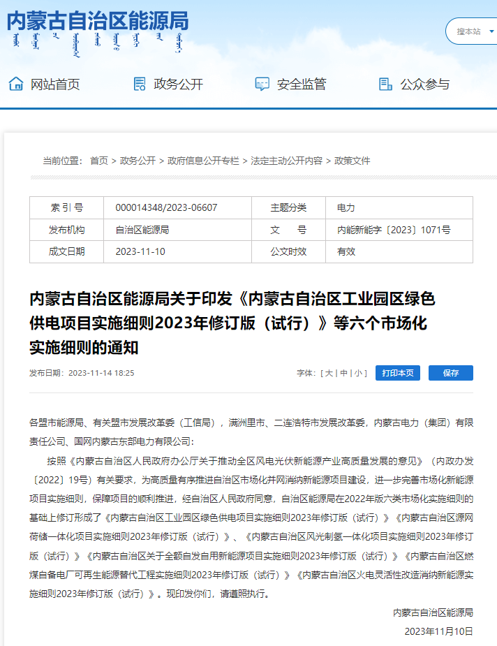日前,內(nèi)蒙古自治區(qū)能源局官網(wǎng)發(fā)布內(nèi)蒙古自治區(qū)關(guān)于全額自發(fā)自用新能源項目實施細(xì)則 2023 年修訂版(試行)。