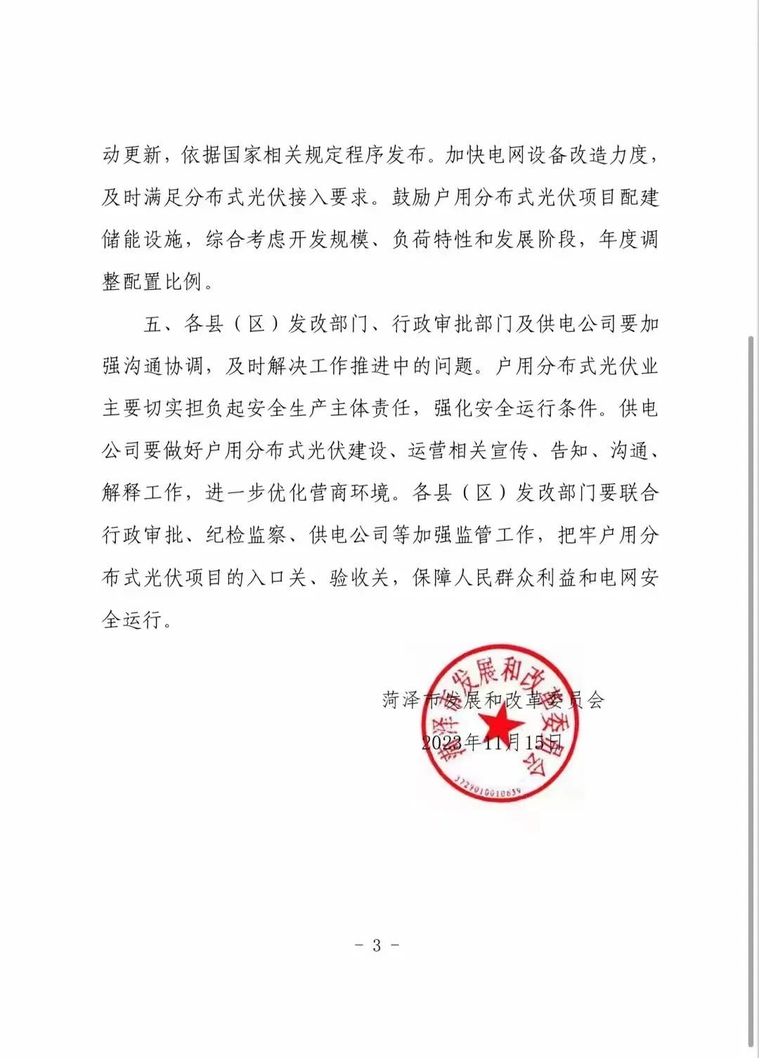 山東菏澤市發(fā)展和改革委員會下《發(fā)關于進一步推進我市戶用分布式光伏規(guī)范有序發(fā)展的通知》。