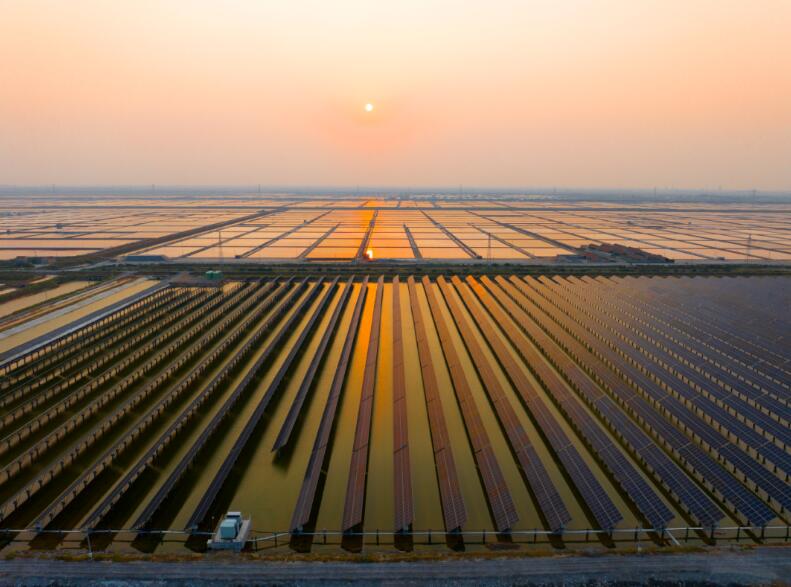 走進濰坊濱海風光儲智慧能源示范基地,波光粼粼的鹽池水面上,一排排光伏板、一座座逆變器機組整齊排列,與蔚藍的天空交相輝映,宛若一片盛放在廣袤鹽田上的光伏“藍海”,在陽光的映照下熠熠生輝,勾勒出一派科技創新與生態環境相得益彰的生態畫卷。