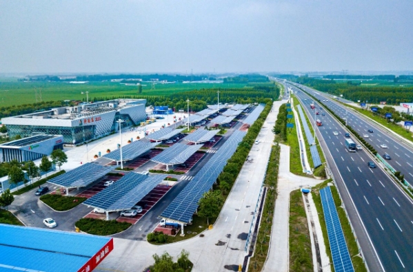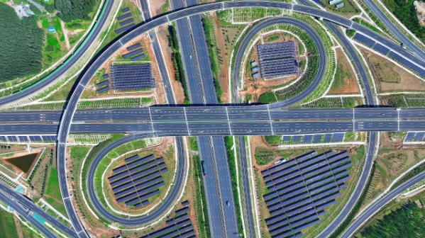 交通領(lǐng)域作為碳排放大戶,在“雙碳”戰(zhàn)略背景下,與能源融合發(fā)展意義重大、勢在必行。山東高速集團利用高速公路沿線土地資源,以重點項目為載體,深入探索交能融合,路域光伏裝機總?cè)萘客黄?20MW,年均可發(fā)電4.6億度,位居全國交通行業(yè)首位。