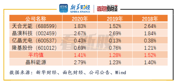 圖4:2018至2020年晶科能源與可比公司財務(wù)費(fèi)用率