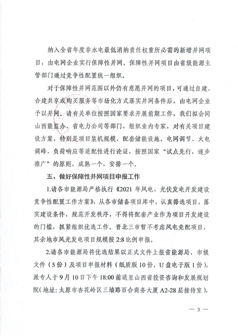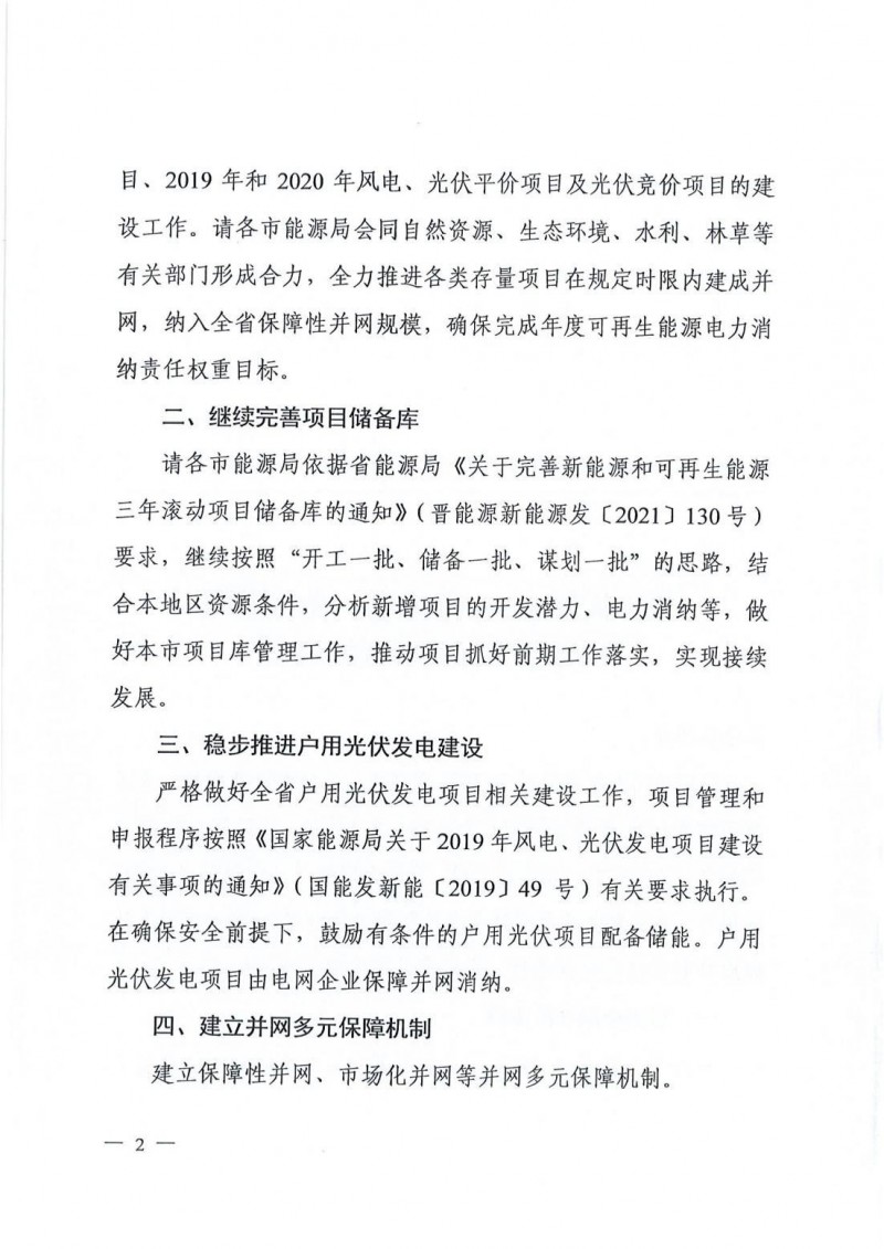 8月26日,山西省能源局印發(fā)《關(guān)于做好2021年風(fēng)電、光伏發(fā)電開發(fā)建設(shè)有關(guān)事項(xiàng)的通知》。通知中對山西省的2021年的光伏、風(fēng)電工作做了規(guī)劃。