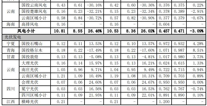 注: 1、國投電力于 2020年1月完成了對定邊光伏10 萬千瓦的收購。
