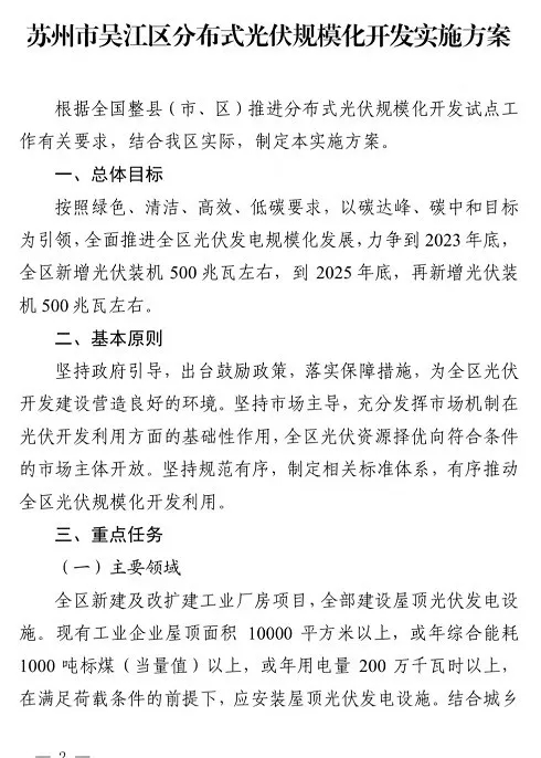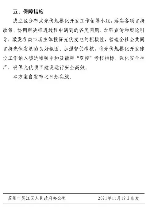 蘇州市吳江區(qū)人民政府發(fā)布印發(fā)吳江區(qū)分布式光伏規(guī)?;_發(fā)實(shí)施方案的通知。