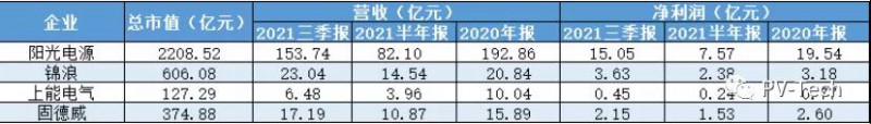 另外,從2021年的半年報和三季報財務(wù)數(shù)據(jù)來看,陽光電源、錦浪、固德威等主要的國內(nèi)逆變器上市企業(yè)在營收、凈利潤等方面都取得了較為強(qiáng)勁的增長。