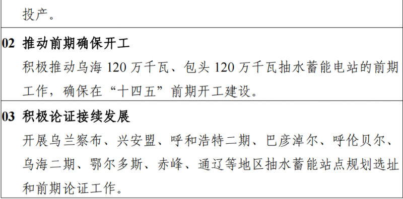 1)加快推進赤峰芝瑞 120 萬千瓦抽水蓄能電站建設(shè),力爭早日建成投產(chǎn)。早日開工烏海 120 萬千瓦、包頭 120 萬千瓦抽水蓄能電站, 確保在“十四五”前期開工建設(shè)。2)力爭“十四五”期間新增并網(wǎng)太陽能熱發(fā)電項目 50 萬千瓦。3)原則上新建新能源項目要配置 15%(2 小時)以上的新型儲能設(shè)施4)“十四五” 期間,規(guī)劃新增新能源外送基地 2900 萬千瓦,力爭累計投產(chǎn) 3900 萬千瓦。力爭2025 年前推動開工配套新能源基地 1000 萬千瓦。具體如下。