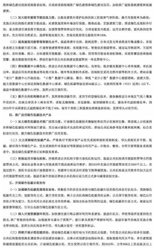 國家機關事務管理局、國家發(fā)改委、財政部、生態(tài)環(huán)境部發(fā)布關于印發(fā)深入開展公共機構綠色低碳引領行動、促進碳達峰實施方案的通知。