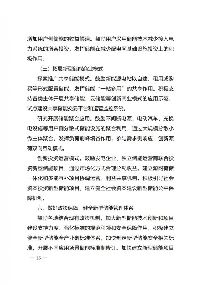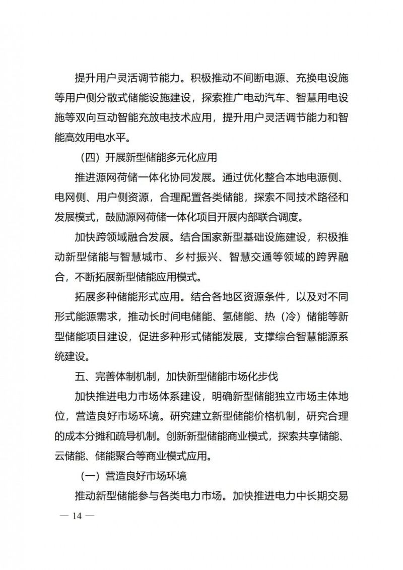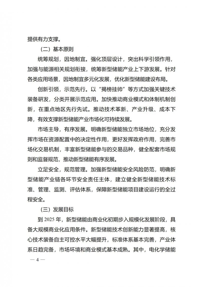 一)總體要求。一是指導思想中明確堅持以技術(shù)創(chuàng)新為內(nèi)生動力、以市場機制為根本依托、以政策環(huán)境為有力保障,穩(wěn)中求進推動新型儲能高質(zhì)量、規(guī)?;l(fā)展的總體思路。二是基本原則中充分體現(xiàn)了以規(guī)劃為引領(lǐng)、以創(chuàng)新為驅(qū)動、以市場為主導、以機制為保障、以安全為底線的發(fā)展思路,明確統(tǒng)籌規(guī)劃、因地制宜,創(chuàng)新引領(lǐng)、示范先行,市場主導、有序發(fā)展,立足安全、規(guī)范管理四項發(fā)展原則。三是在發(fā)展目標中,更注重通過支持技術(shù)和商業(yè)模式創(chuàng)新、健全標準體系、完善政策機制等措施,充分激發(fā)市場活力,推動構(gòu)建以需求為導向,以充分發(fā)揮新型儲能價值為目標的高質(zhì)量規(guī)?;l(fā)展格局。