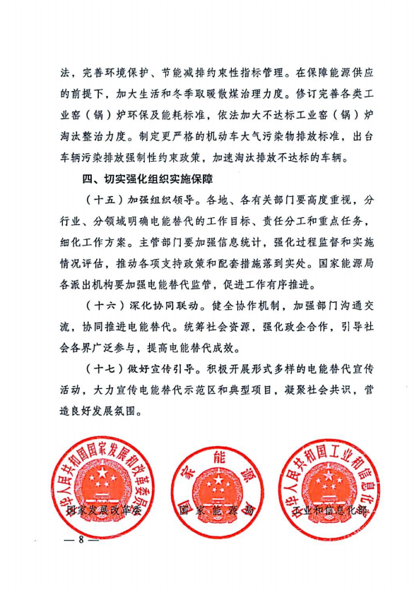 日前,國家發(fā)改委等十部委聯(lián)合發(fā)布《關(guān)于進(jìn)一步推進(jìn)電能替代的指導(dǎo)意見》。