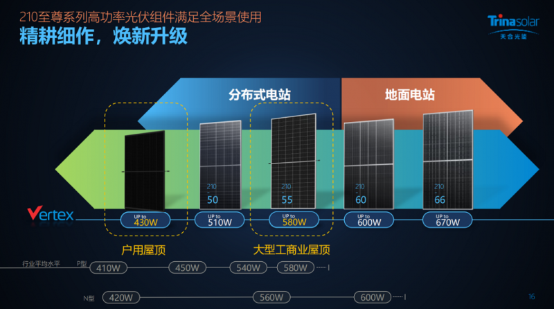 如果說430W組件主要用在戶用光伏,那么,580W組件可以說是海外工商業(yè)分布式項(xiàng)目的優(yōu)秀搭檔。張映斌表示,海外客戶對210大尺寸產(chǎn)品的接受度逐漸提升,部分客戶已經(jīng)按照182方案搭好支架,但希望改用210高效產(chǎn)品,增加系統(tǒng)裝機(jī)容量,他們便適時推出了這款新型組件:寬度與182組件一致(1134mm),長度方向仍采用210電池11片排布,功率最高達(dá)580W,比182尺寸的主流功率(545W)提升約6%。