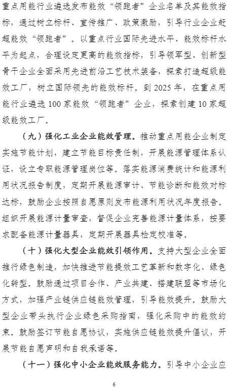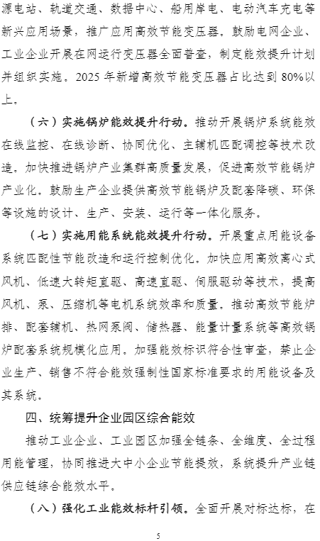 計劃提出,到2025年,重點工業(yè)行業(yè)能效全面提升,數(shù)據(jù)中心等重點領(lǐng)域能效明顯提升,綠色低碳能源利用比例顯著提高,節(jié)能提效工藝技術(shù)裝備廣泛應(yīng)用,標(biāo)準(zhǔn)、服務(wù)和監(jiān)管體系逐步完善,鋼鐵、石化化工、有色金屬、建材等行業(yè)重點產(chǎn)品能效達(dá)到國際先進(jìn)水平,規(guī)模以上工業(yè)單位增加值能耗比2020年下降13.5%。能盡其用、效率至上成為市場主體和公眾的共同理念和普遍要求,節(jié)能提效進(jìn)一步成為綠色低碳的“第一能源”和降耗減碳的首要舉措。