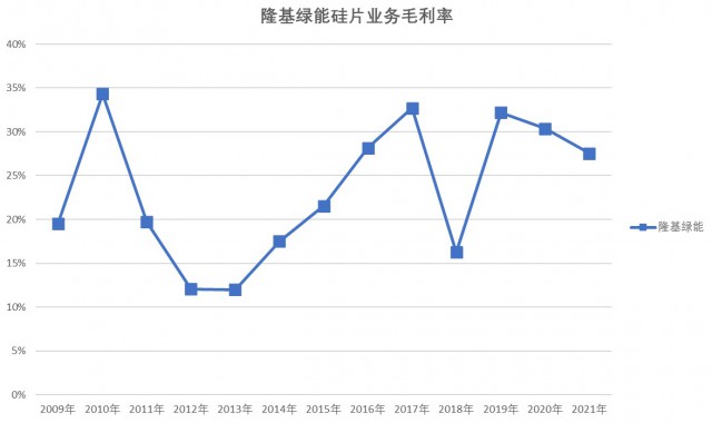 近些年來,盈利能力穩(wěn)定的硅片環(huán)節(jié)被認(rèn)為具有一定的競爭壁壘,而電池片環(huán)節(jié)則給人以相對弱勢的感覺。不過,參考隆基綠能硅片業(yè)務(wù)毛利率變化,其實硅片環(huán)節(jié)亦有顯著的周期性特征,強勢地位并非堅不可摧。
