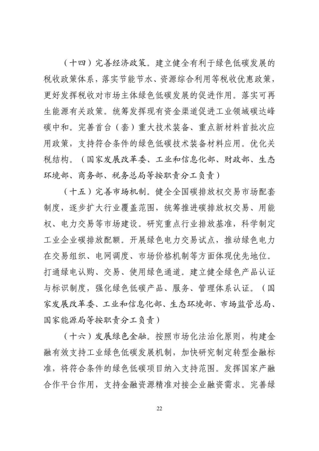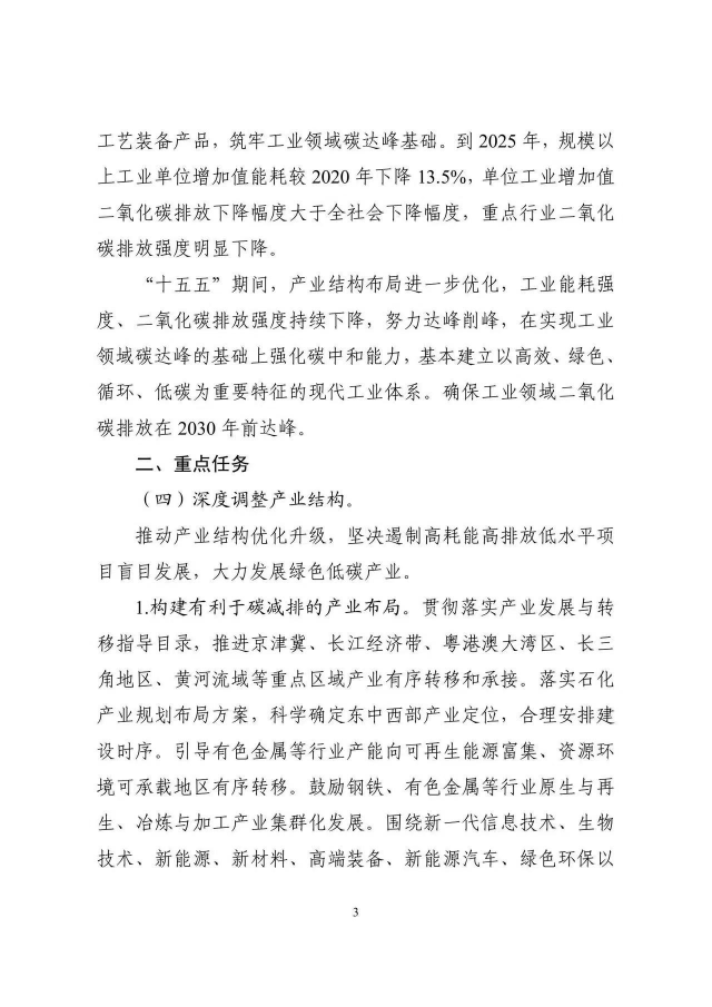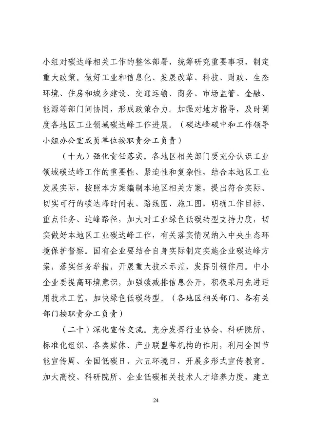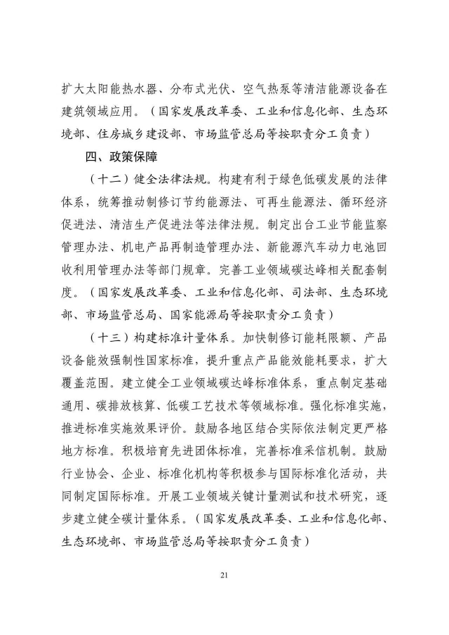 《工業(yè)領(lǐng)域碳達(dá)峰實(shí)施方案》已經(jīng)碳達(dá)峰碳中和工作領(lǐng)導(dǎo)小組審議通過(guò),現(xiàn)印發(fā)給你們,請(qǐng)認(rèn)真貫徹落實(shí)。