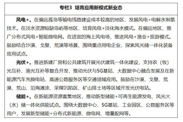 15.培育推廣應(yīng)用新模式新業(yè)態(tài)。推進(jìn)源網(wǎng)荷儲(chǔ)一體化和多能互補(bǔ),培育風(fēng)電+、光伏+等多種應(yīng)用新模式新業(yè)態(tài),加快多層級多時(shí)間尺度多能互補(bǔ)協(xié)同優(yōu)化。