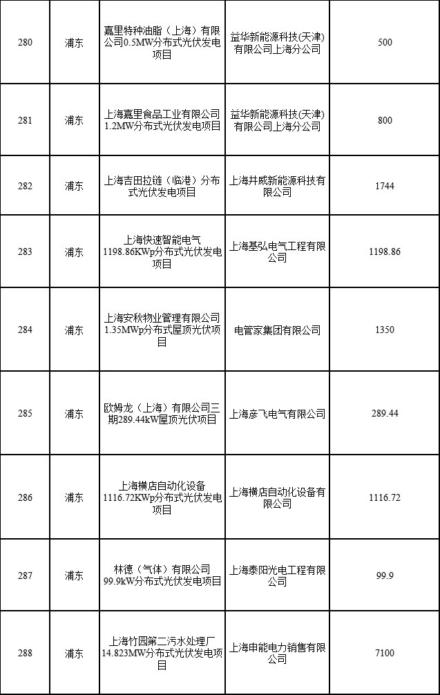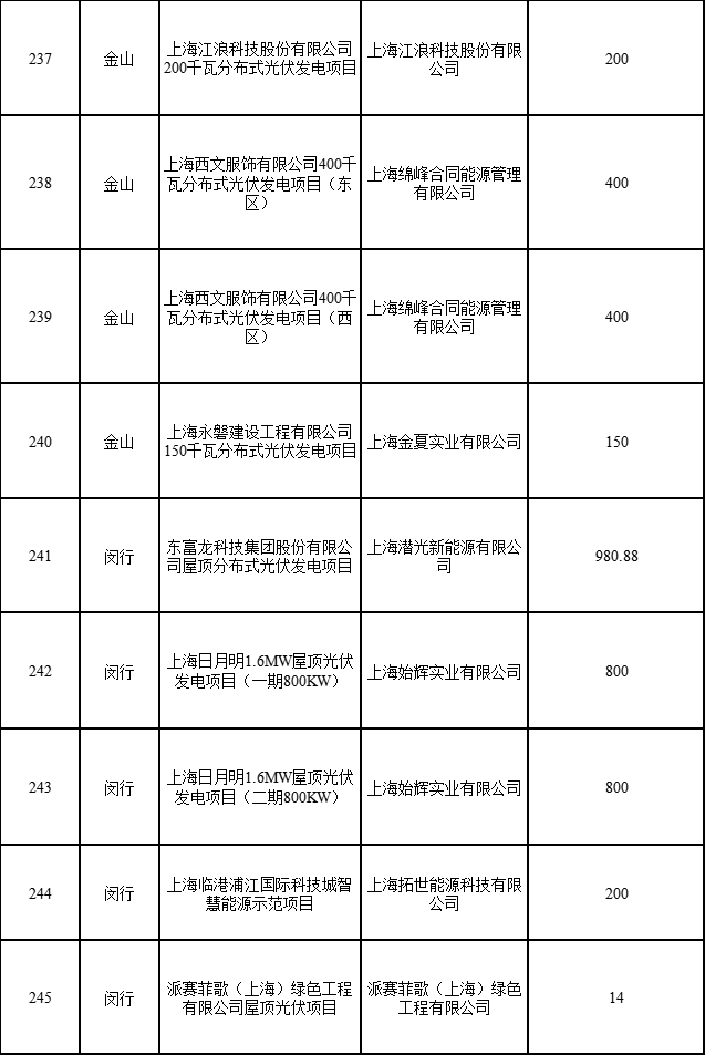 居民光伏8個。經(jīng)青浦區(qū)發(fā)展改革委申請核實,(1)“上海市青浦區(qū)趙巷鎮(zhèn)業(yè)煌路168弄173號(2017年第二批)”用戶名從“孫仟花”變更為“侯笑宇”;(2)“上海市青浦區(qū)趙巷鎮(zhèn)業(yè)前路1688弄446號(2019年第一批)”用戶名從“宋厚波”變更為“王花”;(3)“上海市青浦區(qū)徐涇鎮(zhèn)滬青平公路1638弄156號(2018年第一批)”用戶名從“劉喜芝”變更為“夏永玲”;(4)“上海市青浦區(qū)朱家角鎮(zhèn)浦祥路581弄1801號(2019年第一批)”用戶名從“沈瓊”變更為“金紀(jì)寧”;(5)“上海市青浦區(qū)青浦鎮(zhèn)新園路509弄32號301室(2015年第一批)”用戶名從“趙林濤”變更為“周冠卿”;(6)“上海市青浦區(qū)趙巷鎮(zhèn)滬青平公路2558弄123號(2021年第一批)”用戶名從“田樹濤”變更為“TIANSHUTAO”;(7)“上海市青浦區(qū)趙巷鎮(zhèn)置發(fā)路68弄52號(2017年第三批)”用戶名從“方婷”變更為“陳芳”。經(jīng)奉賢區(qū)發(fā)展改革委申請核實,(8)經(jīng)奉賢區(qū)發(fā)展改革委申請核實,“上海市奉賢區(qū)海灣旅游區(qū)海馬路5888弄609號”用戶名從“蔣惠祥”變更為“印桂花”。