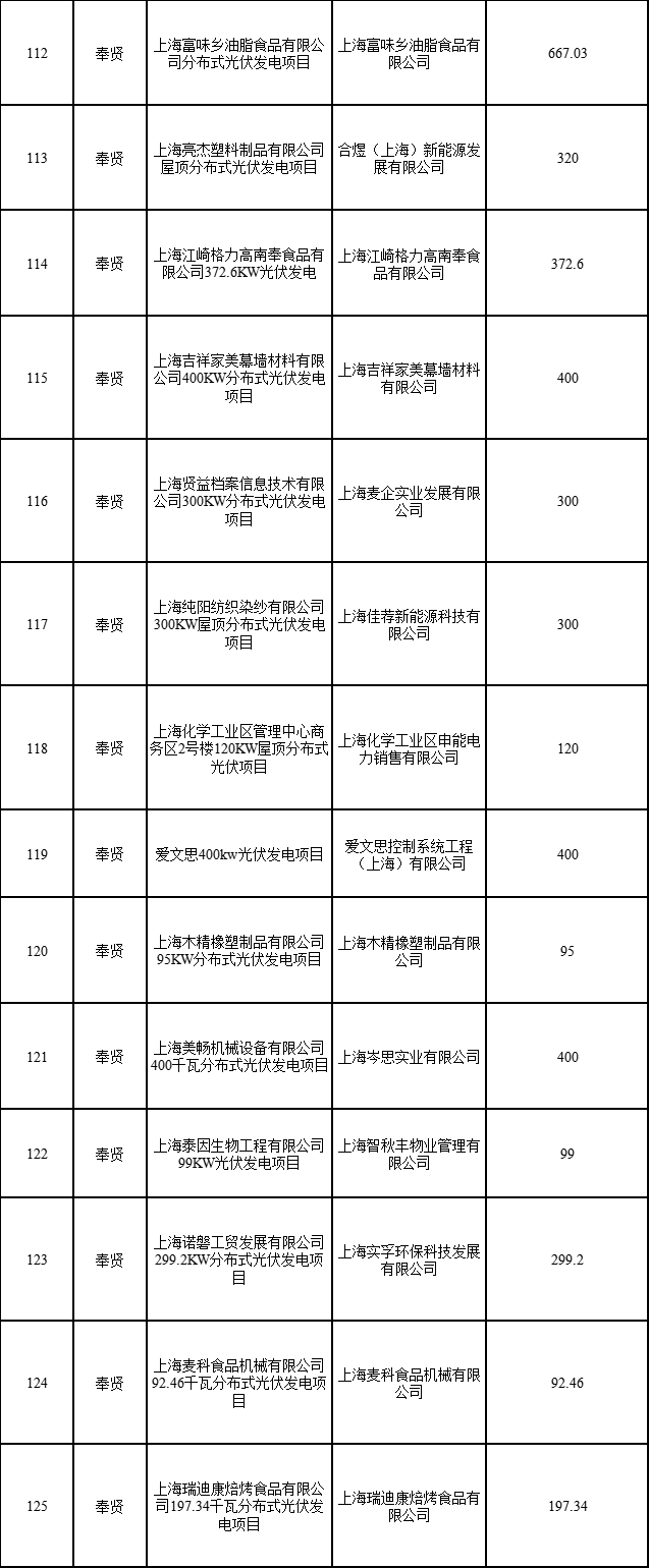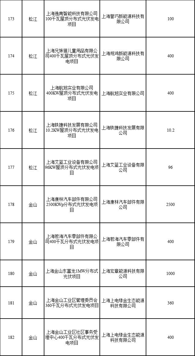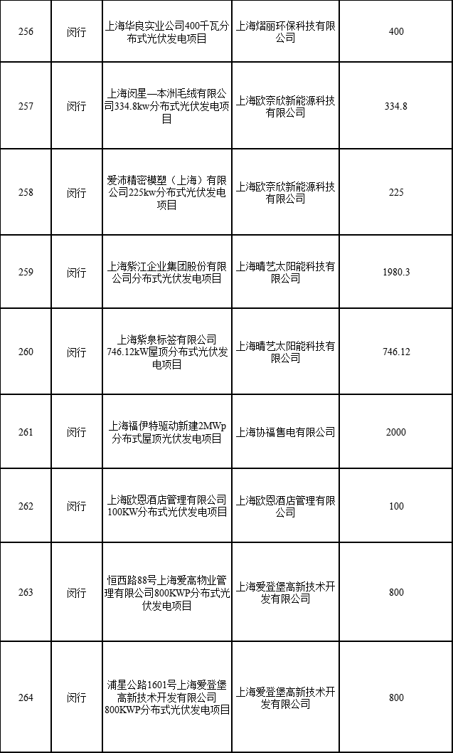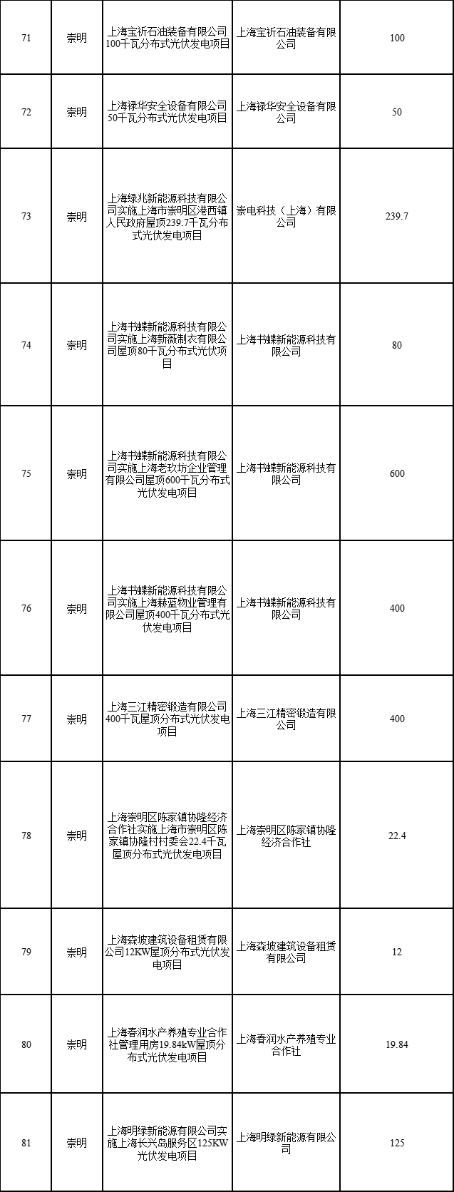 13個項目申請項目變更條件予以確認(rèn),其中:企業(yè)分布式項目5個。(1)經(jīng)青浦區(qū)發(fā)展改革委申請核實,“上海電氣建筑節(jié)能有限公司利用國展中心屋頂建設(shè)2.2MW分布式光伏電站項目(2017年第二批目錄)”,單位名稱從“上海電氣建筑節(jié)能有限公司”變更為“上海電氣數(shù)智生態(tài)科技有限公司”。(2)經(jīng)崇明區(qū)發(fā)展改革委申請核實,“上海綠兆新能源科技有限公司實施崇匠建設(shè)(上海)有限公司52.02KW屋頂分布式光伏發(fā)電項目(2021年第一批目錄)”,單位名稱從“上海綠兆新能源科技有限公司”變更為“崇電科技(上海)有限公司”。(3)經(jīng)嘉定區(qū)發(fā)展改革委申請核實,“上海圣飛新能源嘉定區(qū)興賢路789號上海連盈螺絲有限公司559千瓦分布式光伏發(fā)電項目(2021年第一批目錄)”,單位名稱從“上海圣飛新能源科技有限公司”變更為“嘉興勝錦新能源有限公司”。(4)經(jīng)金山區(qū)發(fā)展改革委申請核實,“上海復(fù)鏑實業(yè)有限公司20千瓦分布式光伏發(fā)電項目(2018年第一批目錄)”,單位名稱從“上海復(fù)鏑實業(yè)有限公司”變更為“上海復(fù)鐳投資管理有限公司”。(5)經(jīng)閔行區(qū)發(fā)展改革委申請核實,“國核工程有限公司146.965KWp屋頂分布式光伏發(fā)電項目(2020年第一批目錄)”,單位名稱從“國核工程有限公司”變更為“上海核工程研究設(shè)計院有限公司”。