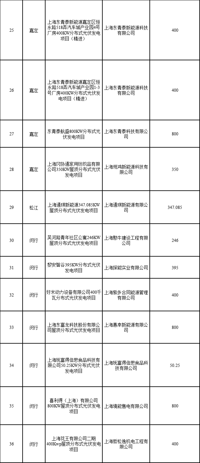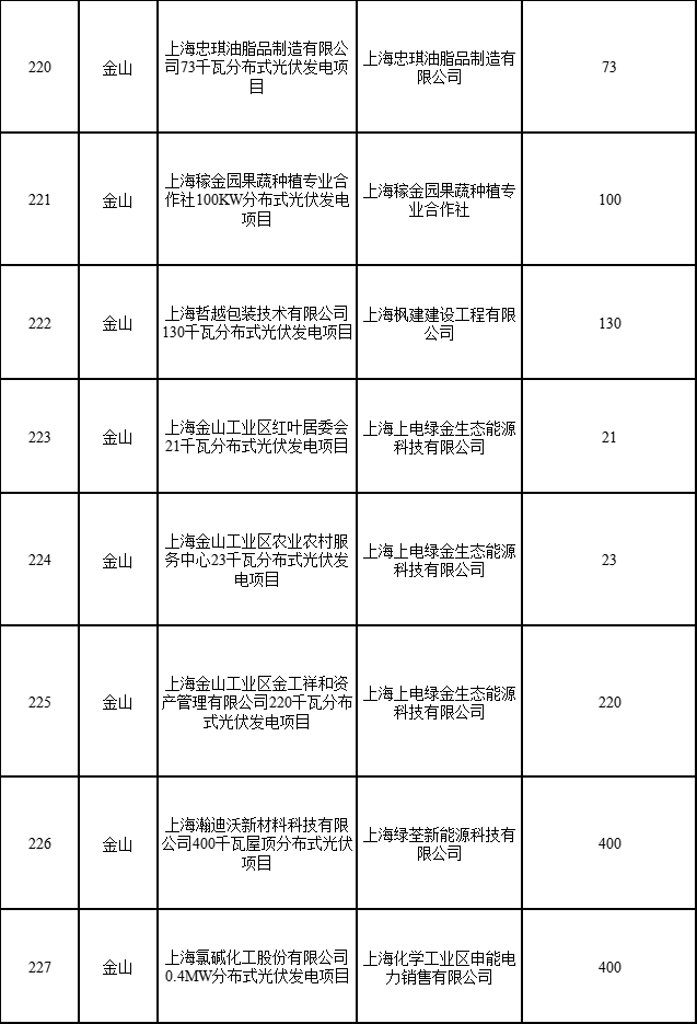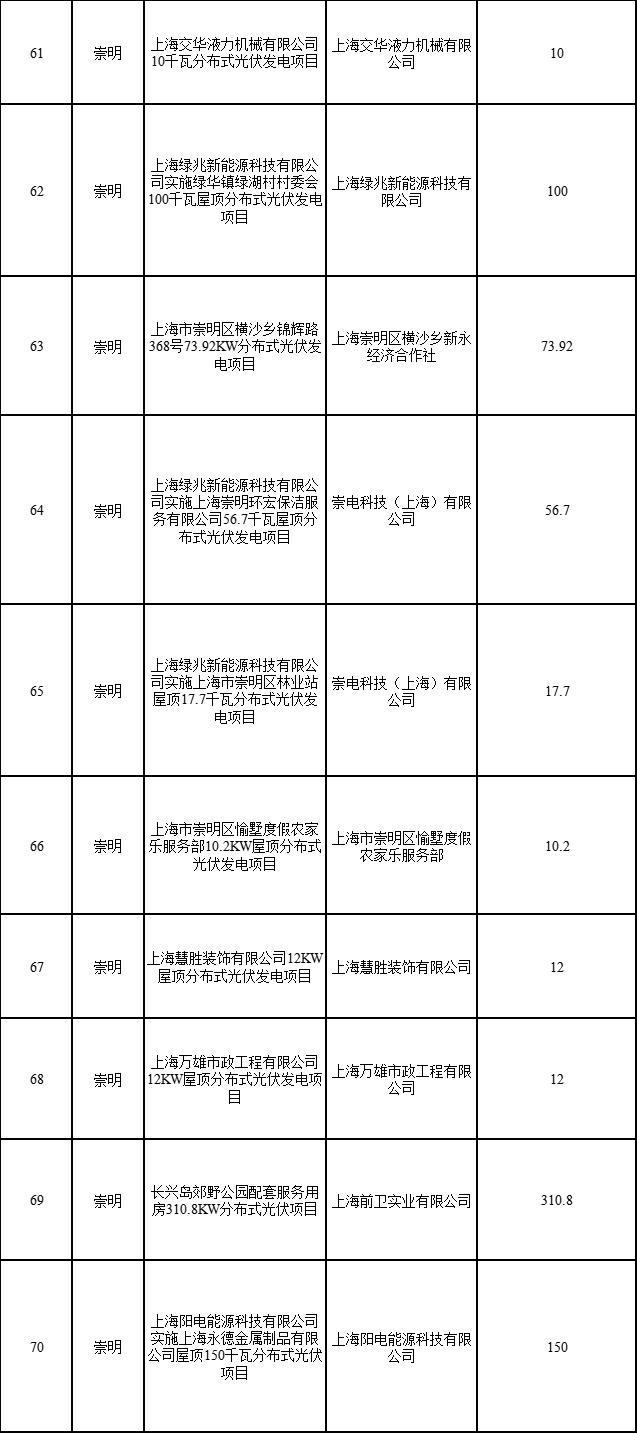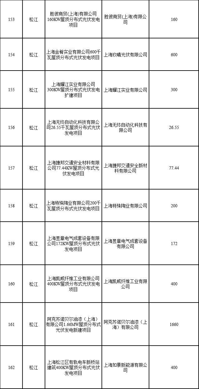 13個項目申請項目變更條件予以確認(rèn),其中:企業(yè)分布式項目5個。(1)經(jīng)青浦區(qū)發(fā)展改革委申請核實,“上海電氣建筑節(jié)能有限公司利用國展中心屋頂建設(shè)2.2MW分布式光伏電站項目(2017年第二批目錄)”,單位名稱從“上海電氣建筑節(jié)能有限公司”變更為“上海電氣數(shù)智生態(tài)科技有限公司”。(2)經(jīng)崇明區(qū)發(fā)展改革委申請核實,“上海綠兆新能源科技有限公司實施崇匠建設(shè)(上海)有限公司52.02KW屋頂分布式光伏發(fā)電項目(2021年第一批目錄)”,單位名稱從“上海綠兆新能源科技有限公司”變更為“崇電科技(上海)有限公司”。(3)經(jīng)嘉定區(qū)發(fā)展改革委申請核實,“上海圣飛新能源嘉定區(qū)興賢路789號上海連盈螺絲有限公司559千瓦分布式光伏發(fā)電項目(2021年第一批目錄)”,單位名稱從“上海圣飛新能源科技有限公司”變更為“嘉興勝錦新能源有限公司”。(4)經(jīng)金山區(qū)發(fā)展改革委申請核實,“上海復(fù)鏑實業(yè)有限公司20千瓦分布式光伏發(fā)電項目(2018年第一批目錄)”,單位名稱從“上海復(fù)鏑實業(yè)有限公司”變更為“上海復(fù)鐳投資管理有限公司”。(5)經(jīng)閔行區(qū)發(fā)展改革委申請核實,“國核工程有限公司146.965KWp屋頂分布式光伏發(fā)電項目(2020年第一批目錄)”,單位名稱從“國核工程有限公司”變更為“上海核工程研究設(shè)計院有限公司”。