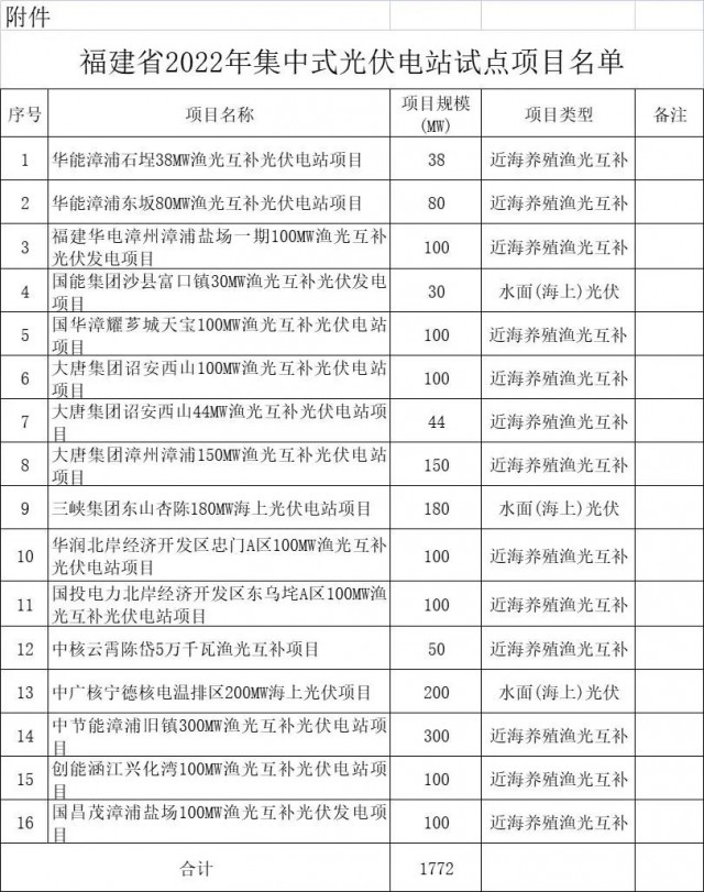 附件:福建省2022年集中式光伏電站試點(diǎn)項(xiàng)目名單