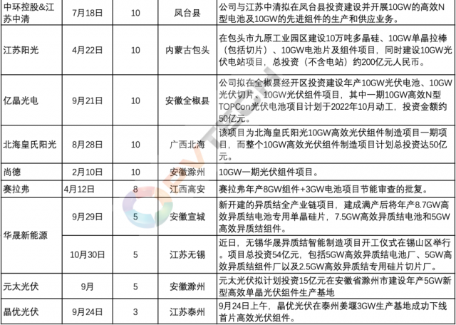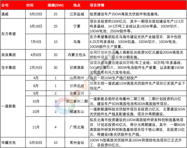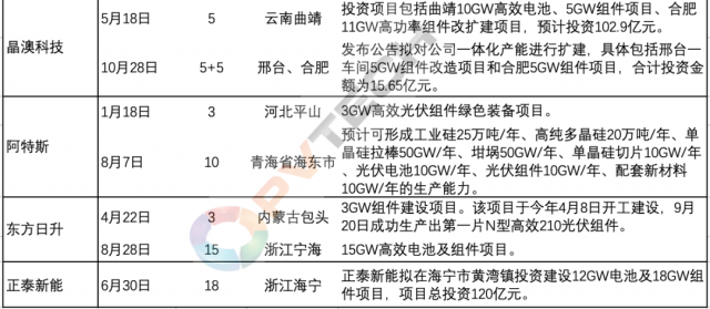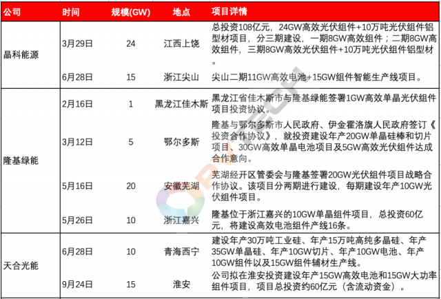 今年以來,以晶科能源、隆基綠能、天合光能、晶澳科技等為代表的行業(yè)第一梯隊主流組件大廠為鞏固各自市場地位、把握行業(yè)發(fā)展帶來的市場機遇,均在積極投資新建組件產(chǎn)能。