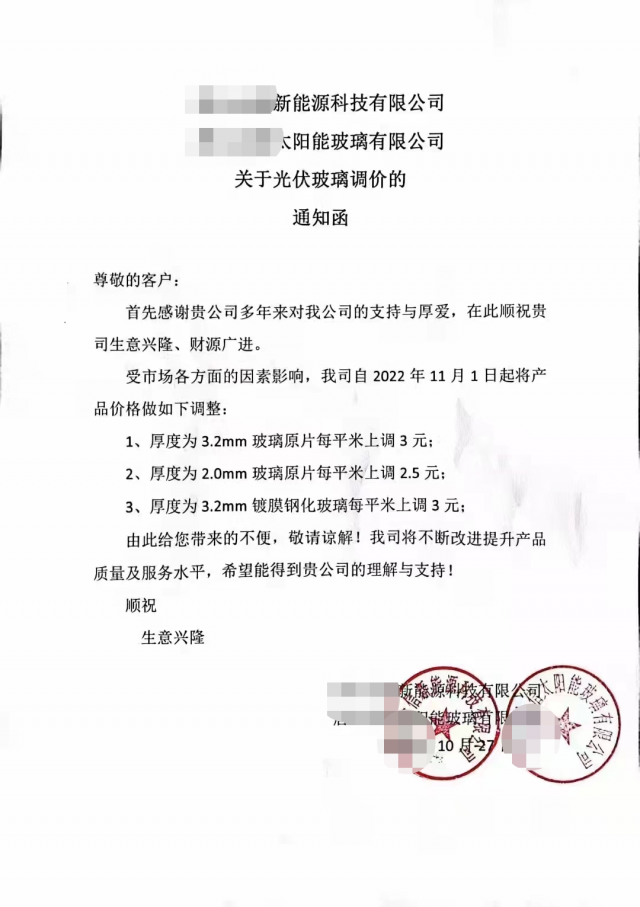 除了電池之外,近日有消息稱,光伏玻璃也在醞釀漲價,根據(jù)某企業(yè)調(diào)價函,玻璃價格上漲2.5-3元/平方米。