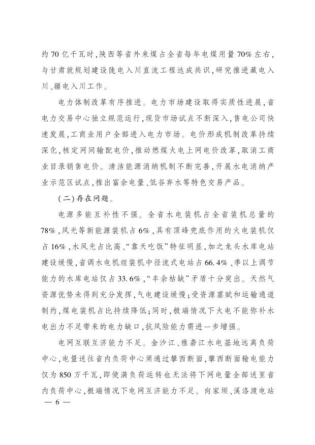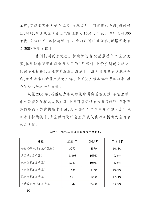 12月6日,四川省人民政府印發《四川省電源電網發展規劃(2022—2025年)》,文件明確主要目標:到2025年,基本建成具備較強抗風險能力的電力系統。電力裝機規模達到16560萬千瓦,水電、火電、風電、光伏發電占比從77.8% 、15.9% 、4.6% 、1.7%調整為64.1% 、16.6% 、6.0% 、13.3% ,電源多能互補、水火互濟能力顯著增強。省調機組季以上調節能力水庫電站達40座、裝機2392萬千瓦,新建成氣電項目裝機容量850萬千瓦以上,開工建設抽水蓄能項目12個,“ 三州一市”,光伏基地和涼山州風電基地加快建設。