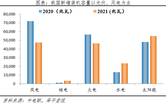 光伏是新能源發電端建設的核心領域之一,中電聯數據顯示,2021年我國太陽能新增裝機容量為54930兆瓦,同比增長14.0%,占新能源發電新增裝機總容量的42%。