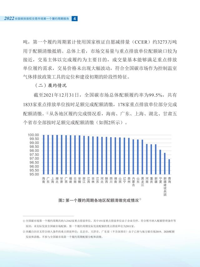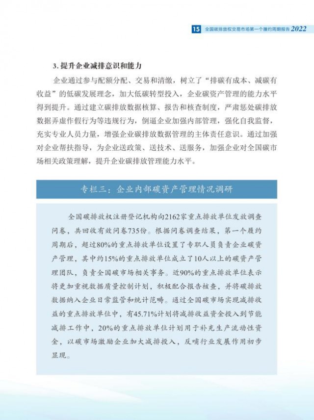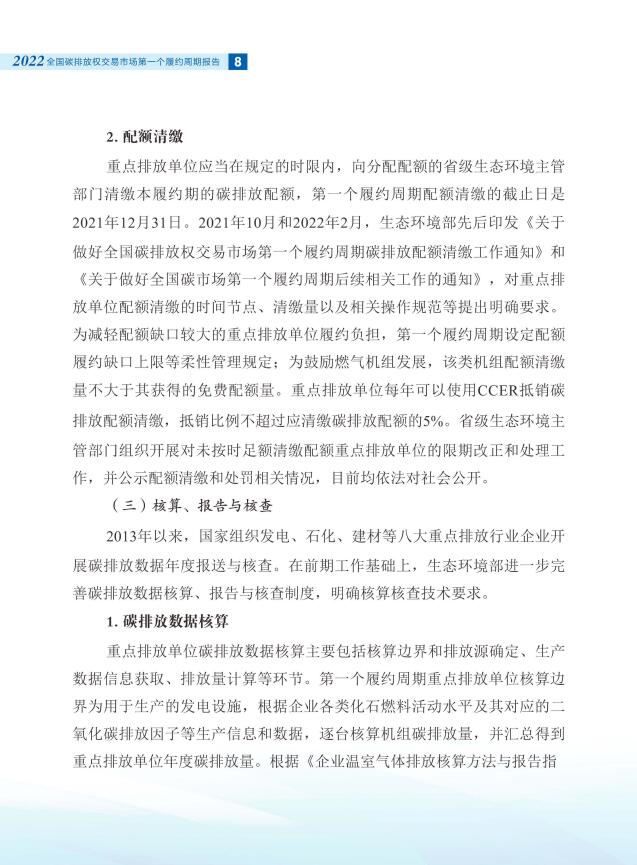 報告全面介紹了全國碳市場第一個履約周期市場交易和履約情況,對配額分配和清繳的工作考慮做了說明,總結梳理了碳排放核算、報告與核查制度體系建設進展,對加強重點排放單位數(shù)據(jù)質量管理相關舉措做了介紹。
