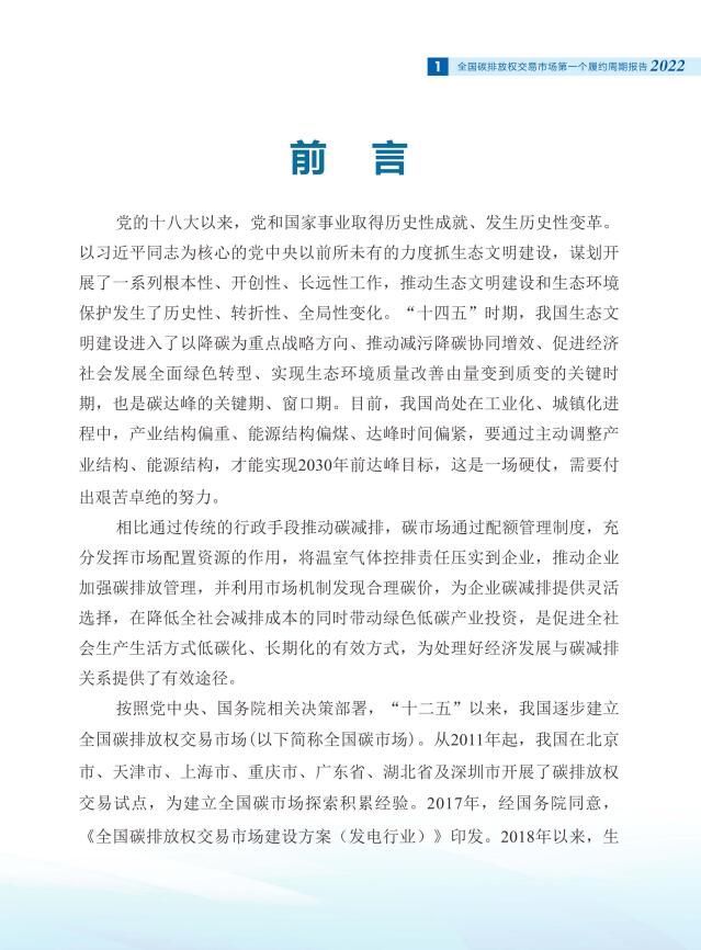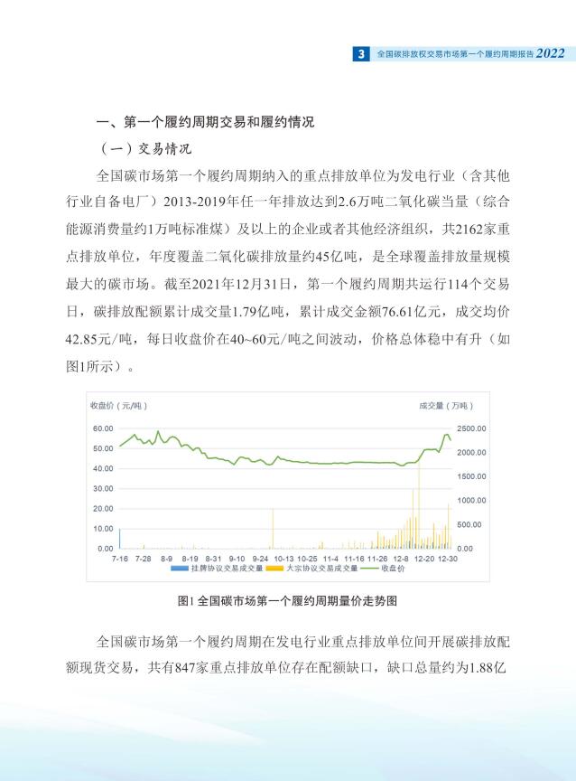 1月1日,生態(tài)環(huán)境部消息,為系統(tǒng)總結全國碳排放權交易市場(以下簡稱:全國碳市場)第一個履約周期建設運行經驗,促進社會各界更好了解全國碳市場建設情況,生態(tài)環(huán)境部組織編制了《全國碳排放權交易市場第一個履約周期報告》。