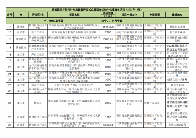 1月5日,江西省可再生能源中心發(fā)布了《開發(fā)區(qū)三年行動計劃及整縣開發(fā)試點項目2022年12月競爭性優(yōu)選結(jié)果》,總規(guī)模99.4MW。截至目前,江西省已公示6-12月的開發(fā)區(qū)三年行動計劃及整縣開發(fā)試點項目競爭性優(yōu)選結(jié)果,總規(guī)模1479.88MW。