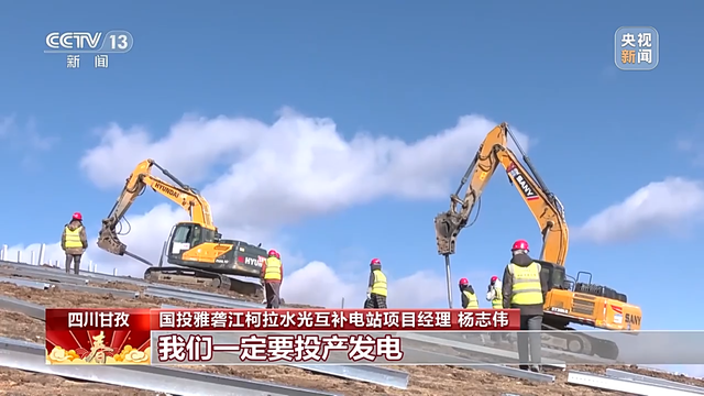 臺(tái)央視記者 古峻嶺:在海拔4600米的柯拉水電光伏互補(bǔ)電站,1000多名建設(shè)者正在加緊施工,他們要在春節(jié)期間把53萬(wàn)根光伏基礎(chǔ)樁全部施工完成。
