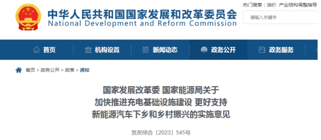 國家發(fā)展改革委 國家能源局關(guān)于加快推進充電基礎(chǔ)設(shè)施建設(shè) 更好支持新能源汽車下鄉(xiāng)和鄉(xiāng)村振興的實施意見