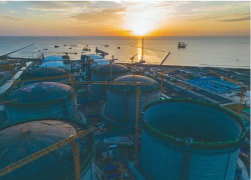中海油鹽城綠能港一期擴(kuò)建工程10號(hào)LNG儲(chǔ)罐順利升頂?shù)轿弧?br />
