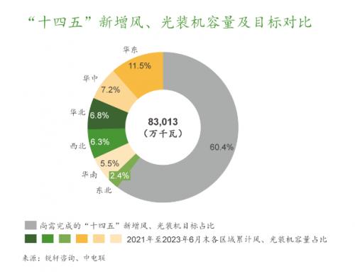 截至2023年6月末,全國31省區(qū)(不含港澳臺)發(fā)布的“十四五”期末累計風、光裝機目標共計13.7億千瓦,包括此期間新增風、光裝機目標8.3億千瓦。