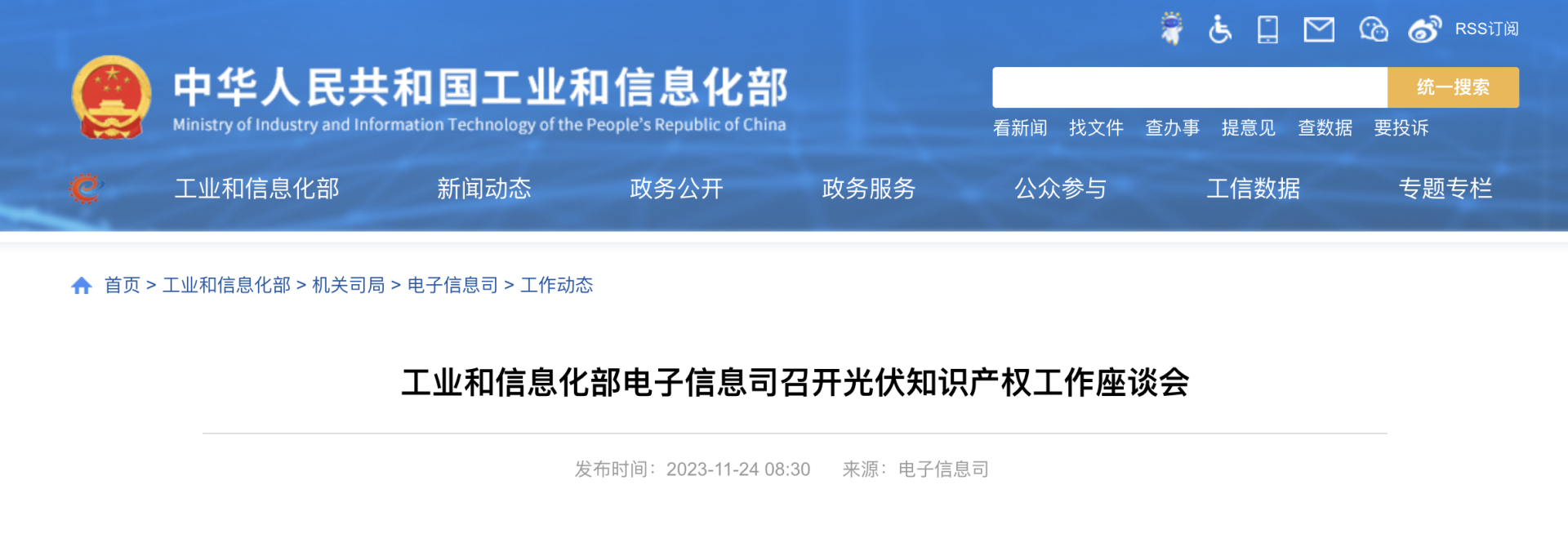 11 月 24 日,據(jù)工業(yè)和信息化部官網(wǎng)消息,近日工業(yè)和信息化部電子信息司在京召開光伏知識產(chǎn)權(quán)工作座談會,就開展光伏行業(yè)知識產(chǎn)權(quán)體系建設(shè),加強知識產(chǎn)權(quán)保護和成果轉(zhuǎn)化,促進光伏產(chǎn)業(yè)持續(xù)創(chuàng)新發(fā)展,組織有關(guān)單位開展工作交流,并對下一步工作進行部署。光伏領(lǐng)域部分骨干企業(yè)、行業(yè)協(xié)會、專利機構(gòu)、研究機構(gòu)、律師事務(wù)所等有關(guān)負責(zé)人參加會議。