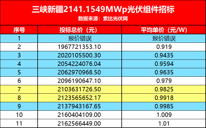 “瘋狂”的并不只有這一家企業(yè)。據(jù)悉,共11家企業(yè)參與這一項目投標,除一家企業(yè)報價明顯錯誤外,其余10家企業(yè),有8家都投出1元/W以下的價格,整體均價僅0.9756元/W,這是行業(yè)內首次出現(xiàn)n型組件平均價低于1元/W的大型招標,值得所有光伏人關注和思考。