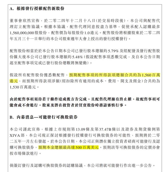 12月19日早間,協(xié)鑫科技通過港交所發(fā)布公告,公司完成15.6億股閃電配售,配售價每股1港元。同時,公司將發(fā)行可轉(zhuǎn)債5億美元。