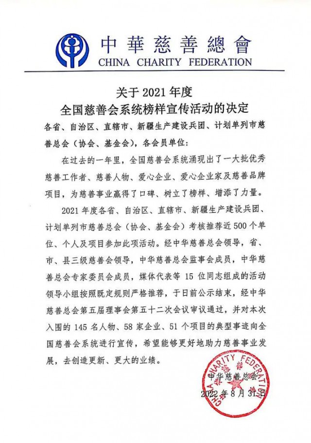 近日,中華慈善總會公布2021年度全國慈善會系統(tǒng)榜樣宣傳活動評選結(jié)果。晶澳科技董事長靳保芳榮獲全國慈善會系統(tǒng)“愛心企業(yè)家”榮譽稱號。